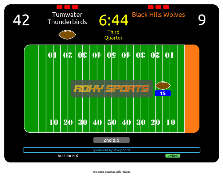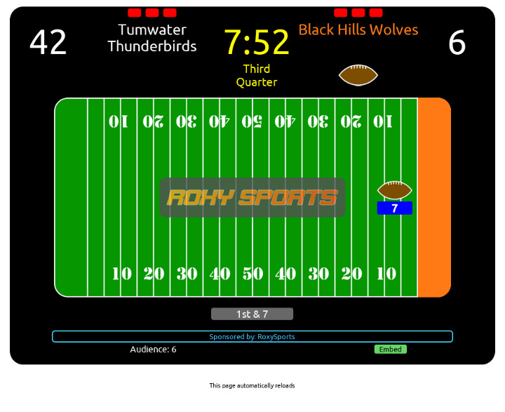 Another feature was the "LiveScore"; an animated graphical (American) football field display that had live scores, ball-tracking and real-time, live audience totals.